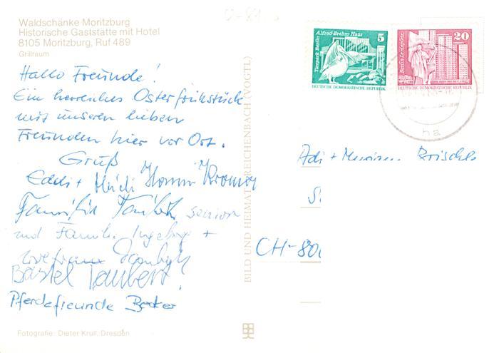 73947379 alte Postkarte Moritzburg Sachsen Waldschaenke Historische Gaststaette mit Hotel postalisch gelaufen Erhaltung siehe scans [WerneD78] KatCode: 11110014280260