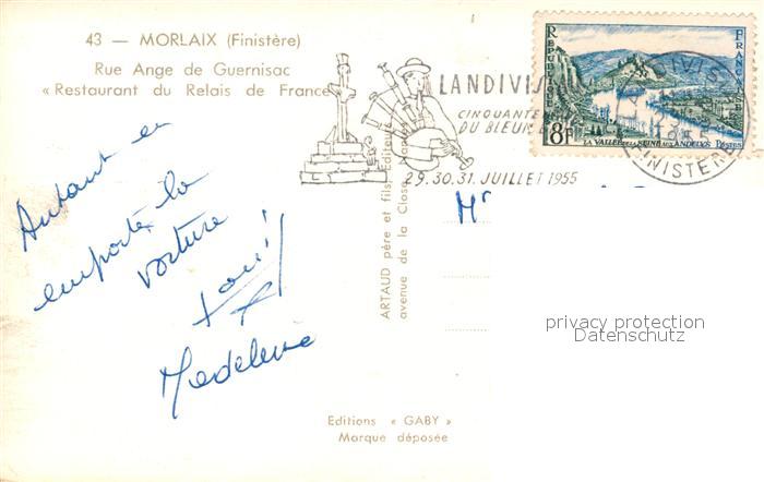 13580189 carte postale Morlaix Rue Ange de Guernisac Restaurant du Relais de France postalisch gelaufen Erhaltung siehe scans [WerneD78] KatCode: 11170029329151