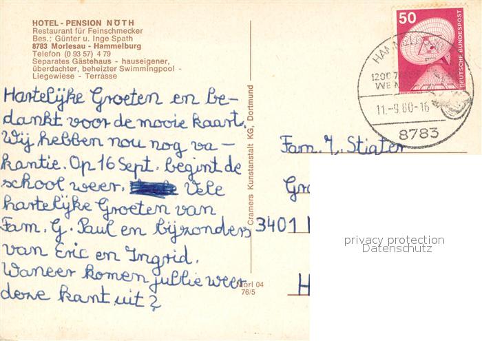 73730843 alte Postkarte Morlesau Unterfranken Hotel-Pension Noeth Teilansichten postalisch gelaufen Erhaltung siehe scans [LiesaD40] KatCode: 11110009672127