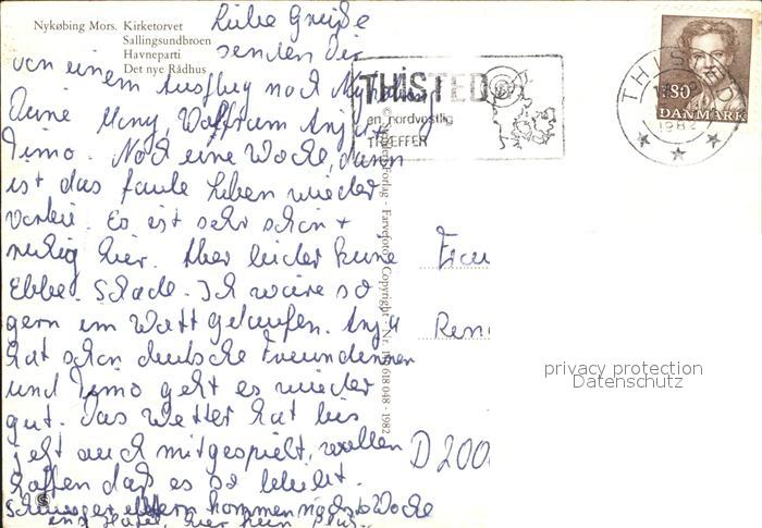 old postcard Mors Kirketorvet Sallingsundbroen Havneparti Det nye Radhus postalisch gelaufen Erhaltung siehe scans