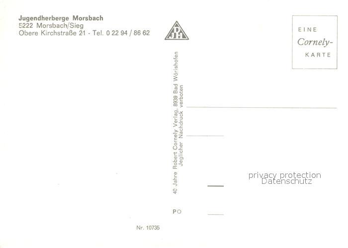 73202186 Morsbach Sieg Jugendherberge Cornely Karte Nr 10735 postalisch nicht gelaufen Erhaltung siehe scans [FriedD77] KatCode: 11110005374028