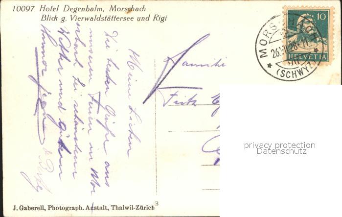 11853368 alte Postkarte Morschach Hotel Degenbalm mit Vierwaldstaettersee und Rigi postalisch gelaufen KatCode: 11470170500506