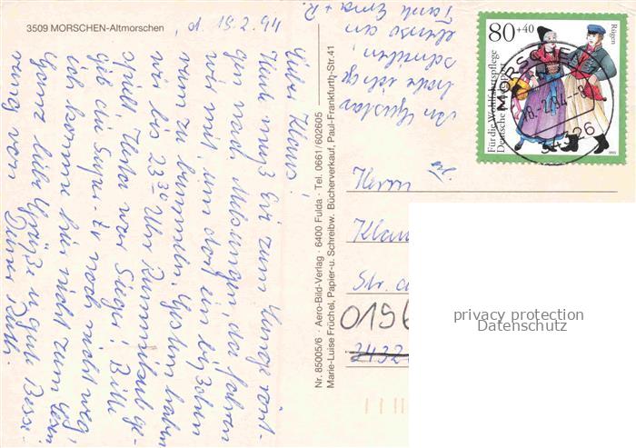 74143479 alte Postkarte Morschen-Wichte Fuldatal Schwalm-Eder-Kreis Hessen Fuldatal Paul Frankfurt Str postalisch gelaufen Erhaltung siehe scans [SanaeD93] KatCode: 11110006634015