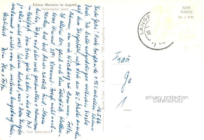 72956054 alte Postkarte Morstein Gerabronn Schloss Morstein postalisch gelaufen Erhaltung siehe scans [PaolaD17] KatCode: 11110008127032