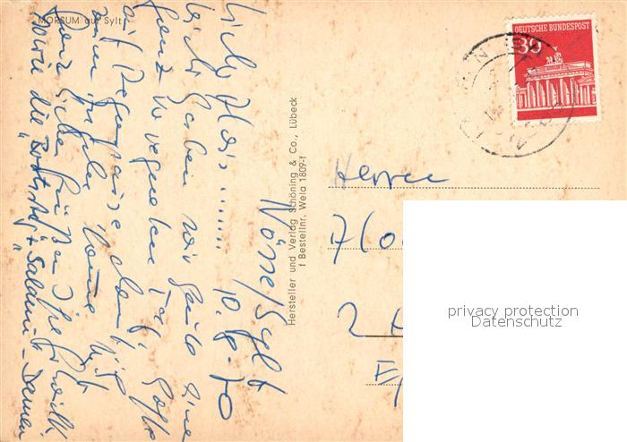 72972548 alte Postkarte Morsum Sylt postalisch gelaufen Erhaltung siehe scans [PaolaD17] KatCode: 11110001054133