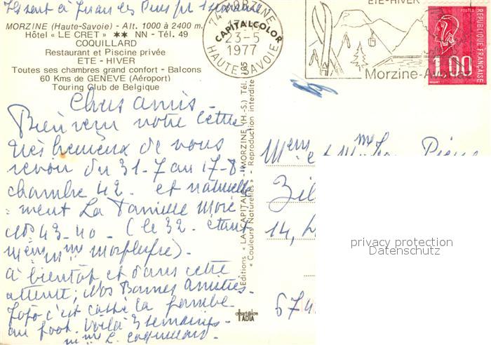 13631082 Morzine Hôtel Restaurant Le Cret Piscine postalisch gelaufen Erhaltung siehe scans [FriedD77] carte postale Frie Katcode 11170074474191