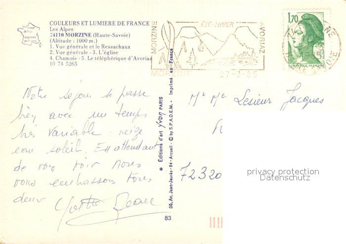 13640231 Morzine Panorama Wintersportplatz Franzoesische Alpen Bergbahn Gemse postalisch gelaufen Erhaltung siehe scans [FriedD77] carte postale Frie Katcode 11170074474191