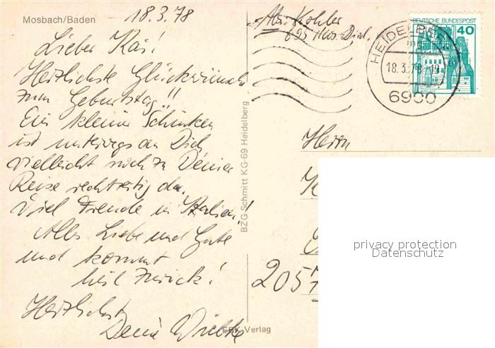 72866692 alte Postkarte Mosbach Baden postalisch gelaufen Erhaltung siehe scans [NatalD47] KatCode: 11110008225058