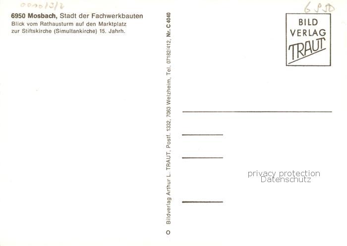73867278 Mosbach Baden Blick vom Rathausturm auf den Marktplatz zur Stiftskirche postalisch nicht gelaufen Erhaltung siehe scans [WerneD78] KatCode: 11110008225058