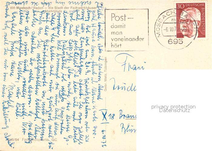 72855625 alte Postkarte Mosbach Baden Fachwerk Marktplatz postalisch gelaufen Erhaltung siehe scans [LiesaD40] KatCode: 11110008225058