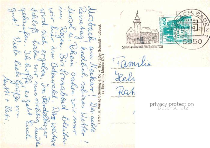 72713111 alte Postkarte Mosbach Baden Fachwerk Schwaene Kirche postalisch gelaufen Erhaltung siehe scans [LiesaD40] KatCode: 11110008225058