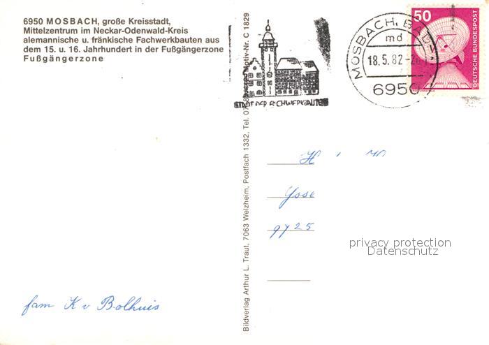 72932515 alte Postkarte Mosbach Baden Fachwerkhaeuser Fussgaengerzone postalisch gelaufen Erhaltung siehe scans [WerneD78] KatCode: 11110008225058