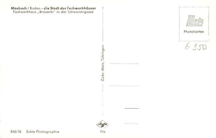 73914762 Mosbach Baden Fachwerkhaus Brauerei in der Schwanengasse postalisch nicht gelaufen Erhaltung siehe scans [FriedD77] KatCode: 11110008225058