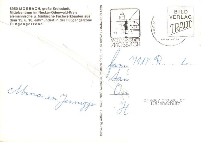 72958204 alte Postkarte Mosbach Baden Fussgaengerzone Fachwerkhaeuser postalisch gelaufen Erhaltung siehe scans [PaolaD17] KatCode: 11110008225058