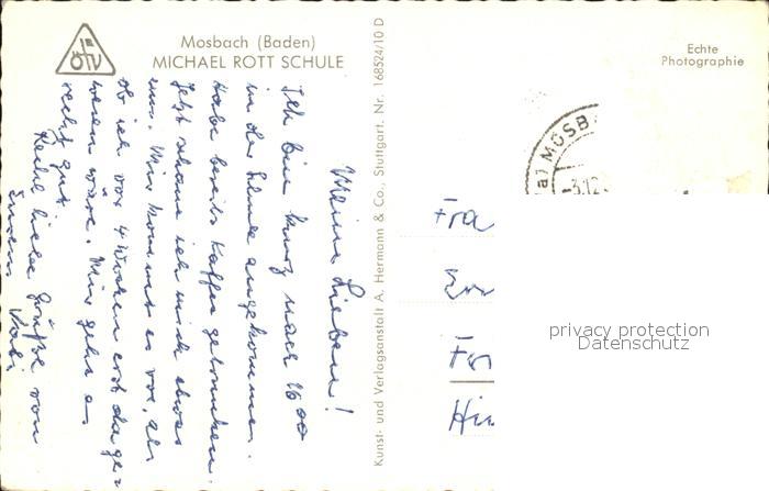72504614 alte Postkarte Mosbach Baden Michael Rott Schule postalisch gelaufen Erhaltung siehe scans KatCode: 11110008225058