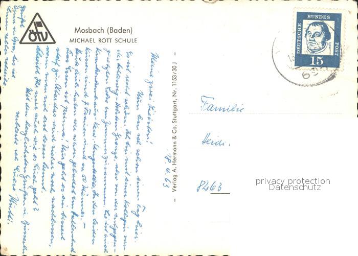 72112747 alte Postkarte Mosbach Baden Michael Rott Schule postalisch gelaufen Erhaltung siehe scans KatCode: 11110008225058