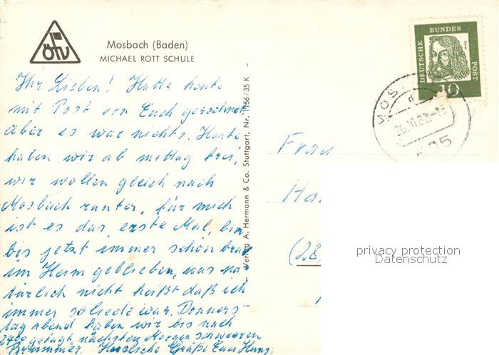 73052100 alte Postkarte Mosbach Baden Michael Rott Schule postalisch gelaufen Erhaltung siehe scans [NatalD47] KatCode: 11110008225058