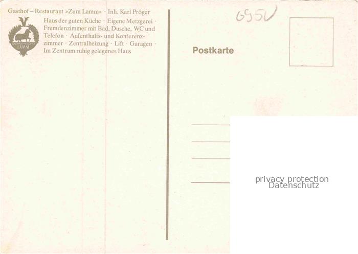 74047933 Mosbach Baden Neckar-Odenwald-Kreis BW Gasthof Zum Lamm Restaurant postalisch nicht gelaufen Erhaltung siehe scans [WerneD78] KatCode: 11110008225058