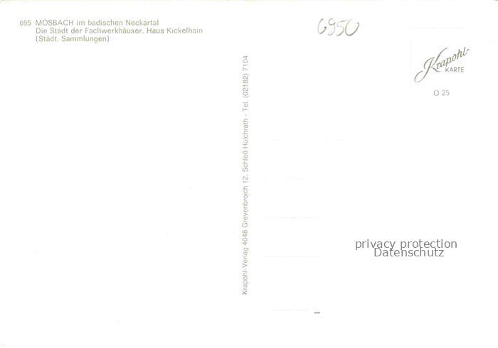 74048128 Mosbach Baden Neckar-Odenwald-Kreis BW Haus Kickelhahn Staedtische Sammlungen Stadt der Fachwerkhaeuser postalisch nicht gelaufen Erhaltung siehe scans [FriedD77] KatCode: 11110008225058