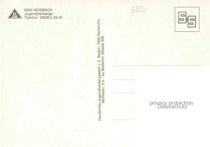 74047955 Mosbach Baden Neckar-Odenwald-Kreis BW Jugendherberge postalisch nicht gelaufen Erhaltung siehe scans [WerneD78] KatCode: 11110008225058
