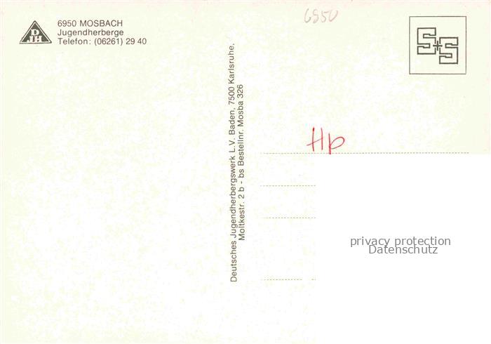 74047952 Mosbach Baden Neckar-Odenwald-Kreis BW Jugendherberge postalisch nicht gelaufen Erhaltung siehe scans [WerneD78] KatCode: 11110008225058