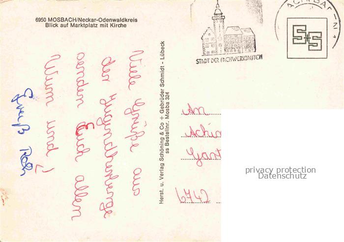 74048143 alte Postkarte Mosbach Baden Neckar-Odenwald-Kreis BW Marktplatz Kirche Fachwerkhaeuser postalisch gelaufen Erhaltung siehe scans [FriedD77] KatCode: 11110008225058