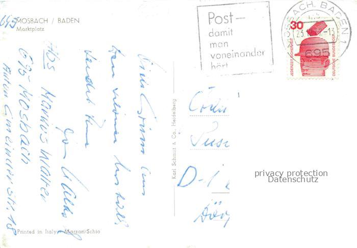 74047913 alte Postkarte Mosbach Baden Neckar-Odenwald-Kreis BW Marktplatz Kirche postalisch gelaufen Erhaltung siehe scans [WerneD78] KatCode: 11110008225058