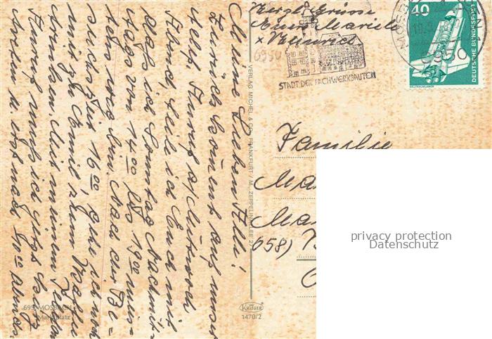 74035785 alte Postkarte Mosbach Baden Neckar-Odenwald-Kreis BW Marktplatz mit Kirche postalisch gelaufen Erhaltung siehe scans [WerneD78] KatCode: 11110008225058