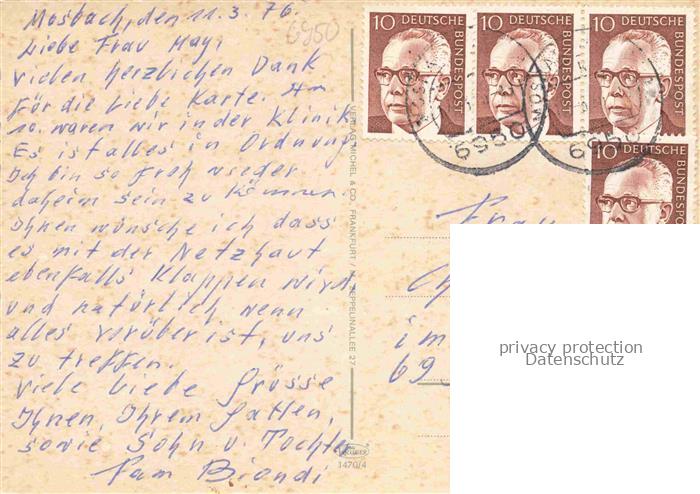 74048147 alte Postkarte Mosbach Baden Neckar-Odenwald-Kreis BW Marktplatz Rathaus Palmsches Haus Kirche Panorama Stadt der Fachwerkhaeuser postalisch gelaufen Erhaltung siehe scans [FriedD77] KatCode: 11110008225058