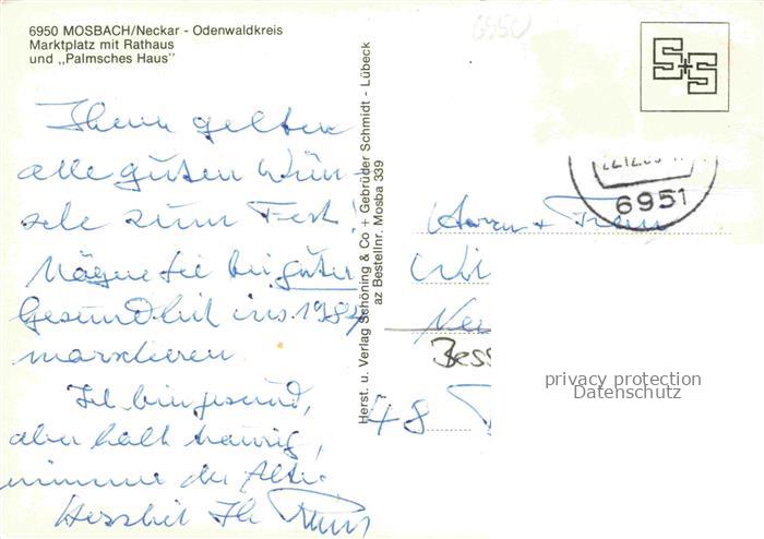 74048232 alte Postkarte Mosbach Baden Neckar-Odenwald-Kreis BW Marktplatz Rathaus Palmsches Haus Stadt der Fachwerkhaeuser postalisch gelaufen Erhaltung siehe scans [FriedD77] KatCode: 11110008225058