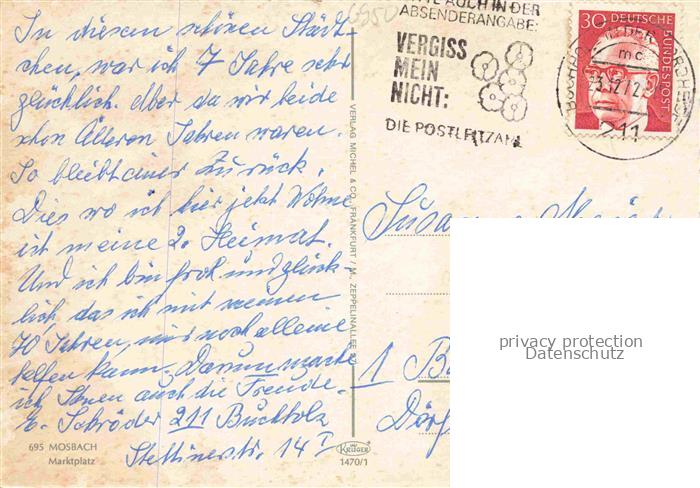 74048304 alte Postkarte Mosbach Baden Neckar-Odenwald-Kreis BW Marktplatz Wasserspiele Stadt der Fachwerkhaeuser postalisch gelaufen Erhaltung siehe scans [FriedD77] KatCode: 11110008225058