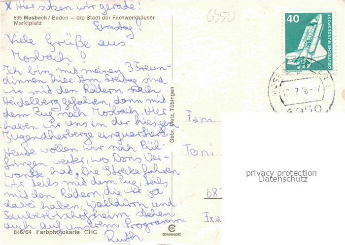 74047949 alte Postkarte Mosbach Baden Neckar-Odenwald-Kreis BW Marktplatz postalisch gelaufen Erhaltung siehe scans [WerneD78] KatCode: 11110008225058