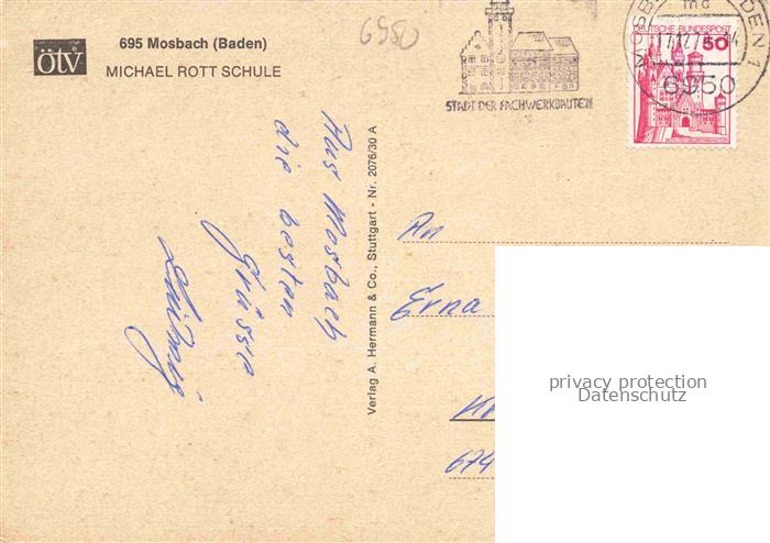 74047943 alte Postkarte Mosbach Baden Neckar-Odenwald-Kreis BW Michael Rott Schule postalisch gelaufen Erhaltung siehe scans [WerneD78] KatCode: 11110008225058