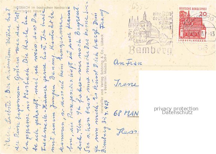74048234 alte Postkarte Mosbach Baden Neckar-Odenwald-Kreis BW Palmsches Haus Stadt der Fachwerkhaeuser postalisch gelaufen Erhaltung siehe scans [FriedD77] KatCode: 11110008225058