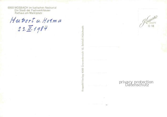 74047904 Mosbach Baden Neckar-Odenwald-Kreis BW Rathaus Marktplatz postalisch nicht gelaufen Erhaltung siehe scans [WerneD78] KatCode: 11110008225058