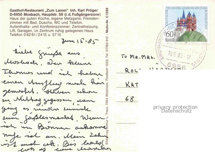74048028 alte Postkarte Mosbach Baden Neckar-Odenwald-Kreis BW Rathaus Palmsches Haus Stadtmitte Hauptstrasse Fachwerkhaeuser Historie postalisch gelaufen Erhaltung siehe scans [FriedD77] KatCode: 11110008225058