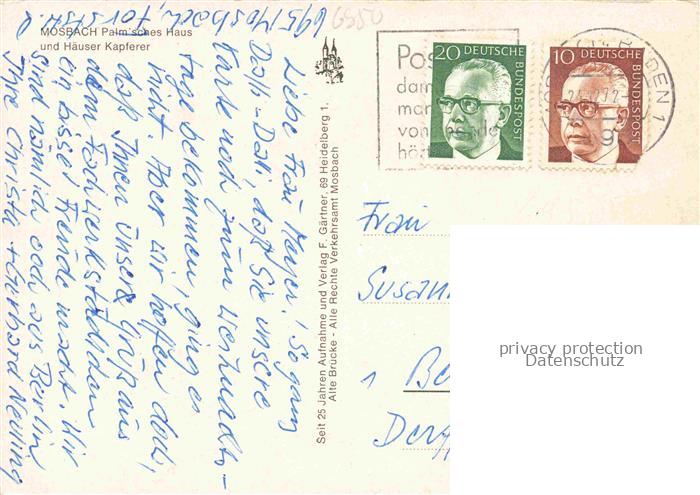 74047891 alte Postkarte Mosbach Baden Neckar-Odenwald-Kreis BW Rathaus Palmsches Haus und Haeuser Kapferer postalisch gelaufen Erhaltung siehe scans [WerneD78] KatCode: 11110008225058