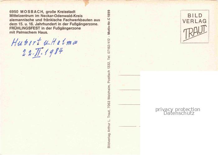 74048125 Mosbach Baden Neckar-Odenwald-Kreis BW Stadt der Fachwerkhaeuser Fruehlingsfest Fussgaengerzone Palmsches Haus postalisch nicht gelaufen Erhaltung siehe scans [FriedD77] KatCode: 11110008225058