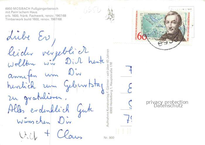 74048302 alte Postkarte Mosbach Baden Neckar-Odenwald-Kreis BW Stadt der Fachwerkhaeuser Fussgaengerzone Palmsches Haus postalisch gelaufen Erhaltung siehe scans [FriedD77] KatCode: 11110008225058