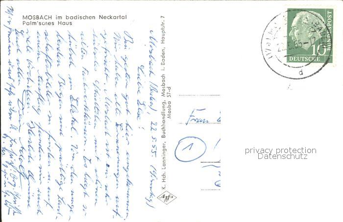 72093385 alte Postkarte Mosbach Baden Palm´sches Haus postalisch gelaufen Erhaltung siehe scans KatCode: 11110008225058