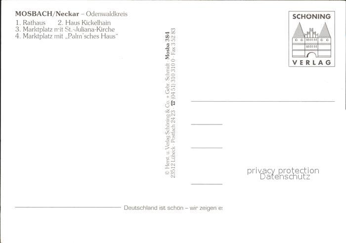 72377298 Mosbach Baden Rathaus Haus Kickelhain Marktplatz Kirche Palmsches Haus Fachwerkhaeuser Geschichte postalisch nicht gelaufen Erhaltung siehe scans KatCode: 11110008225058