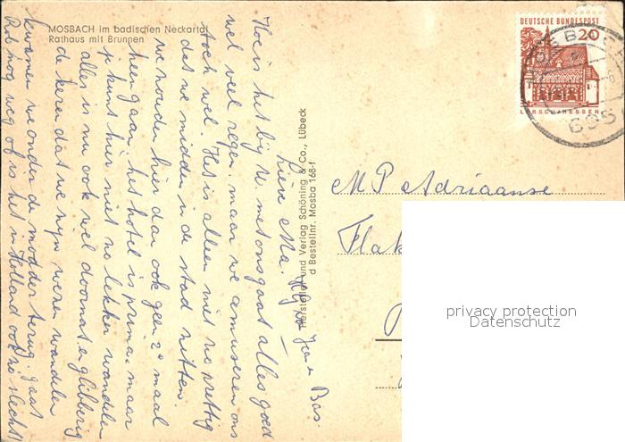 72421585 alte Postkarte Mosbach Baden Rathaus mit Brunnen postalisch gelaufen Erhaltung siehe scans KatCode: 11110008225058