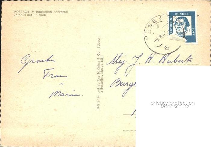 72420167 alte Postkarte Mosbach Baden Rathaus mit Brunnen postalisch gelaufen Erhaltung siehe scans KatCode: 11110008225058
