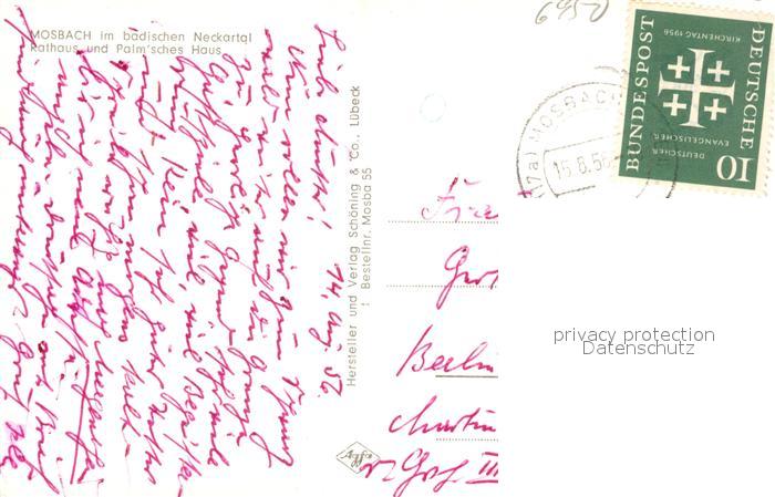 43368931 alte Postkarte Mosbach Baden Rathaus Palm’sches Haus Fachwerkhaus Historisches Gebaeude postalisch gelaufen Erhaltung siehe scans [FriedD77] KatCode: 11110008225058