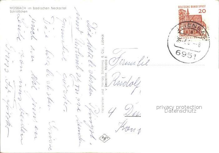 72177523 alte Postkarte Mosbach Baden Schlooesschen postalisch gelaufen Erhaltung siehe scans KatCode: 11110008225058