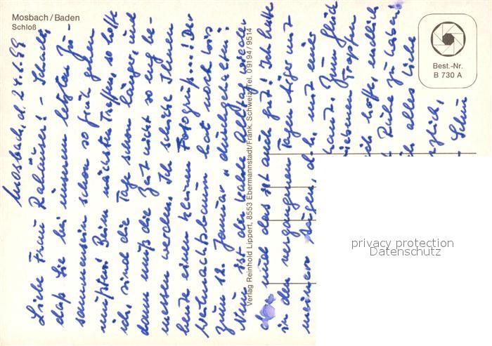 73272960 Mosbach Baden Schloss postalisch nicht gelaufen Erhaltung siehe scans [WerneD78] KatCode: 11110008225058