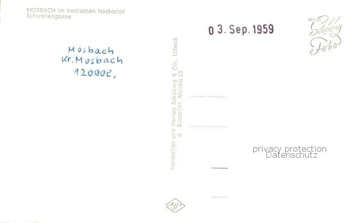 73761505 Mosbach Baden Schwanengasse postalisch nicht gelaufen Erhaltung siehe scans [FriedD77] KatCode: 11110008225058