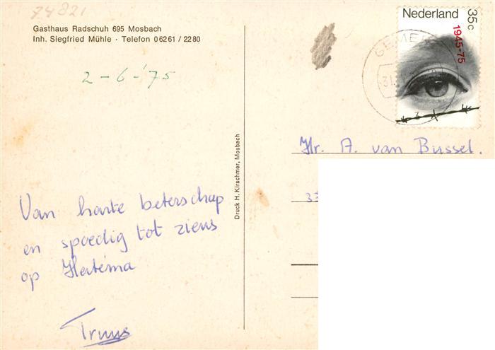 73884198 alte Postkarte Mosbach Dieburg Gathaus Radschuh postalisch gelaufen Erhaltung siehe scans [FriedD77] KatCode: 11110006432021