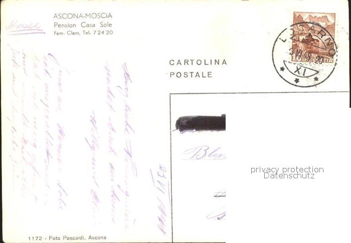 11643907 alte Postkarte Moscia Ascona Pension Casa Sole Lago Maggiore postalisch gelaufen Erhaltung siehe scans KatCode: 11470210655908