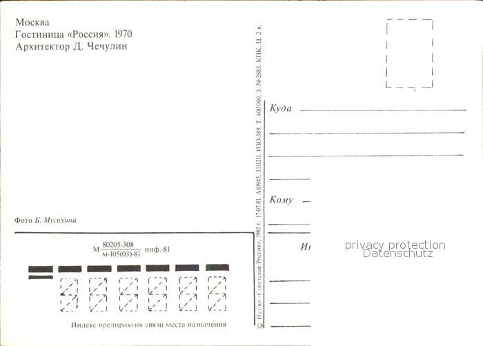 Moscou Moskau Hotel Rossija postalisch nicht gelaufen Erhaltung siehe scans [NatalD47 kt111box]